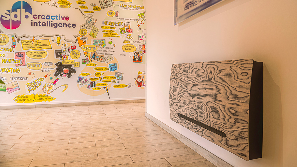 The creative agency SDB Stile di Bologna had a clear goal: to rethink the comfort of their workspaces by combining optimal thermal and acoustic performance with an aesthetic that evokes nature. For them, a traditional fan coil wasn’t enough. They needed a solution that could merge technological innovation with material authenticity.